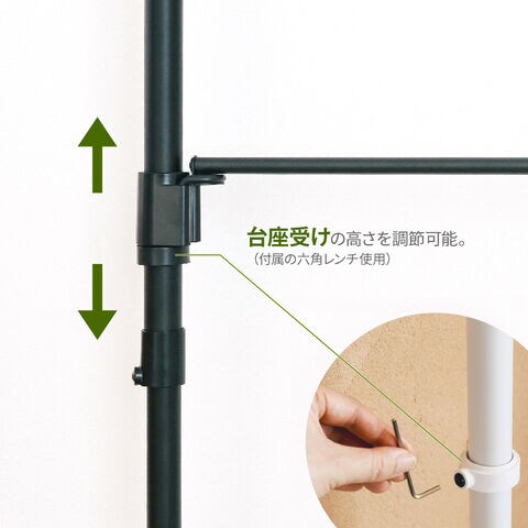 自由にレイアウトできる台座受けを調節することで、ロッドの高さを自由に変更できます。お家のレイアウトや植物の生育に合わせて調節が可能です。
