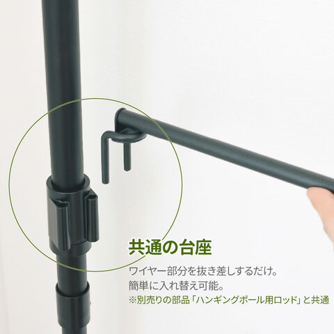 共有の台座別売りの部品「ハンギングポール用シェルフ」と共通の台座なので、ワイヤー部分を抜き差しするだけで簡単に入れ替えできます。