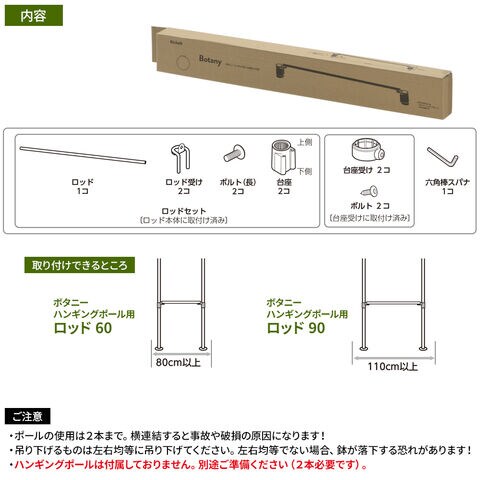 リッチェル ボタニー ハンギングポール用 ロッド 幅60 ブラック | 観葉植物 突っ張り 枝 60cm幅 吊り下げ おしゃれ ハンギングポール部品 屋内 室内 吊り鉢 鉢 グリーン 吊るす ポールハンガー 吊鉢 ひっかけ インテリア 拡張パーツ