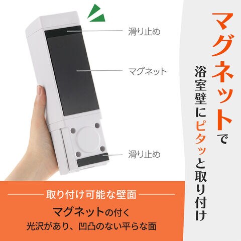マグネットで取り付けマグネットの付く浴室壁に設置できます。お好みの場所にペタッと取り付けるだけのカンタン設置。