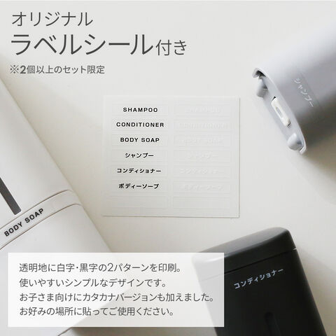 壁に浮かせて取り付けられる詰め替えボトル。揃えてスッキリ【2個セット】+オリジナルラベルシール付き
