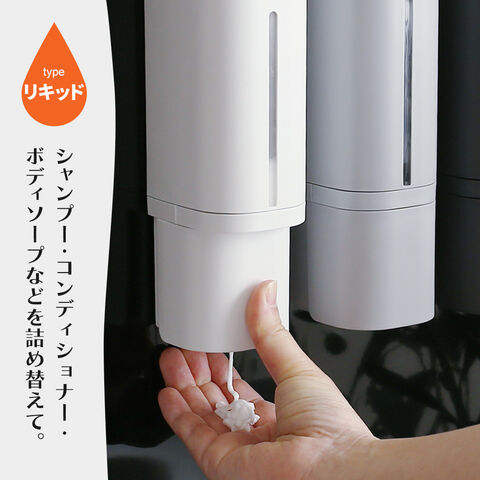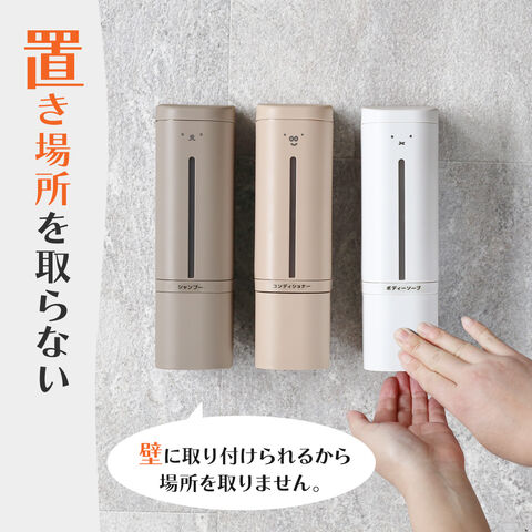 壁に浮かせて取り付けられる詰め替えボトル。揃えてスッキリ【3個セット】+オリジナルラベルシール付き