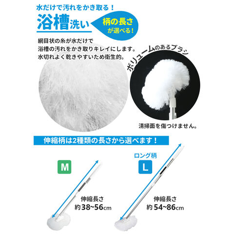 水だけで汚れが落ちる伸縮柄付きブラシ「浴槽洗いM」洗剤不要!網目状の糸が水だけで浴槽の汚れをかき取りキレイにします。