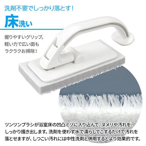 デコボコ面に入り込む「浴室床洗い」ツンツンブラシが浴室床の凹凸ミゾに入り込んで、ヌメリや汚れをしっかり掻き出します。床を傷つけずにお掃除できます。