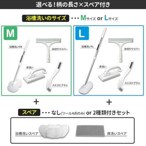 お風呂掃除の必需品!人気のお掃除ツール4点セットとスペア2種類のセット。