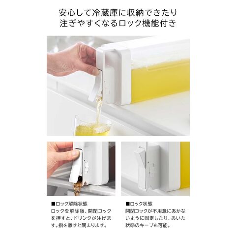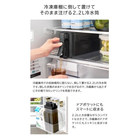冷蔵庫の棚に倒して置けて そのまま注ぐことも可能! 2.2Lの多機能な冷水筒