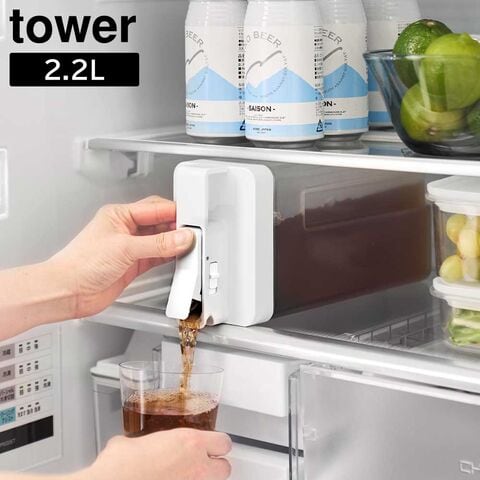 山崎実業 tower タワー 倒して置けてそのまま注げる冷水筒 2.2L ホワイト 10029 | 麦茶 ポット サーバー ピッチャー ジャグ 大容量 ジャグ 棚置き 横置き 冷蔵庫 食洗機OK 冷水ポット 2200ml