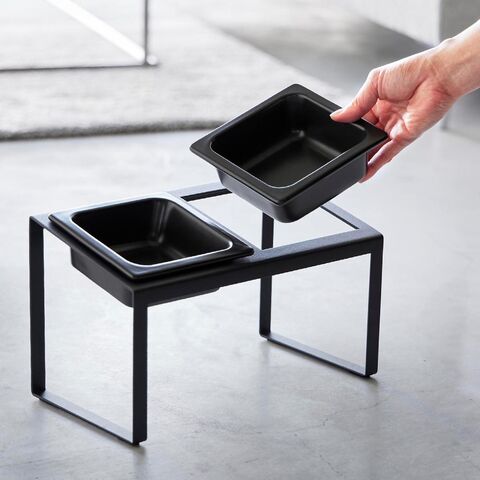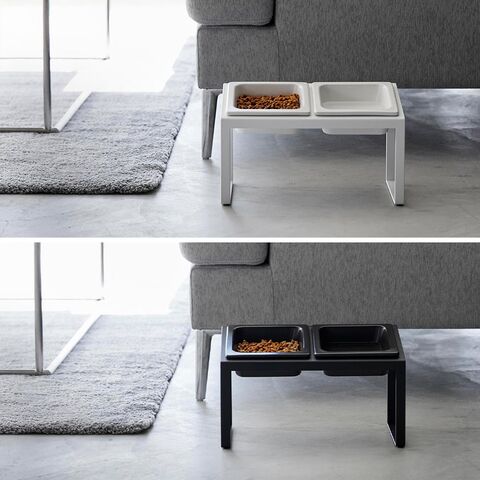 ボウルが2個並んだデザインで、ウェットフードとドライフード、ドライフードとお水、など、2種類を並べてセットできます。