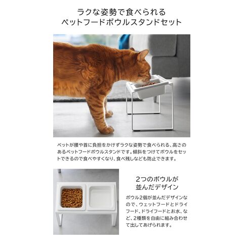 山崎実業 nooks ヌークス ペットフードボウルスタンドセット 斜めハイタイプ ボウル2個セット 幅29cm 高さ17.6cm ホワイト 10037 / ブラック10038