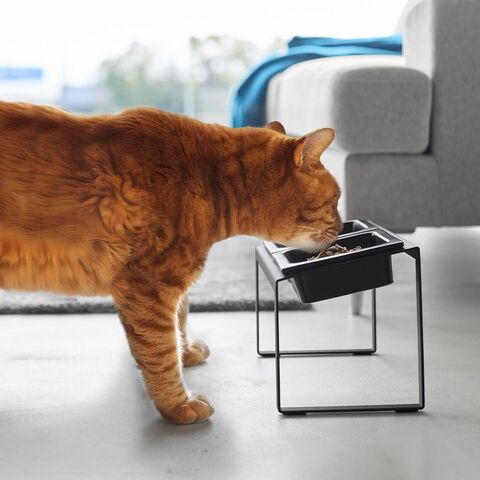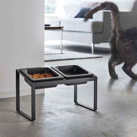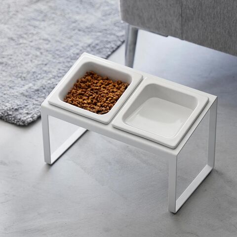 ペットが頭を下げずに食べられる、高さのあるペットフードボウルスタンドです。