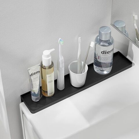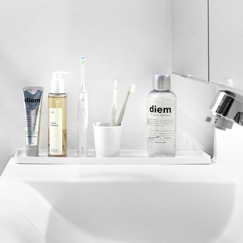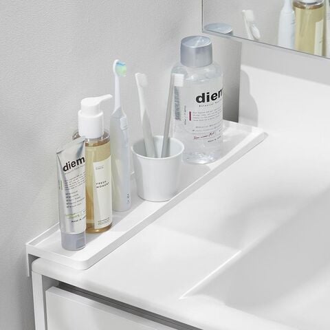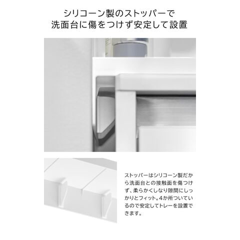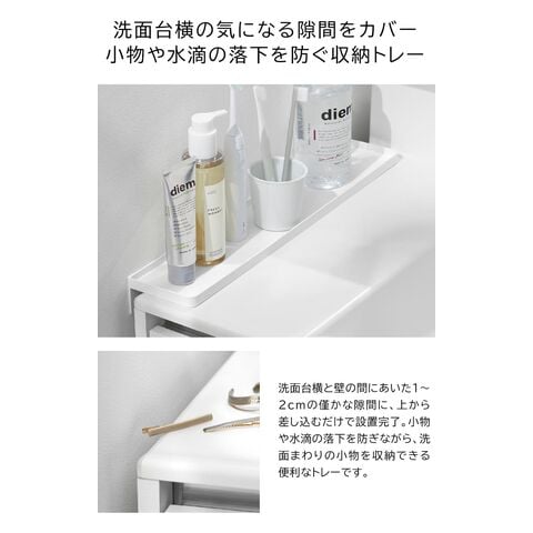 洗面台横の隙間をカバーして 小物や水滴の落下を防止 スッキリ収納もできるトレー
