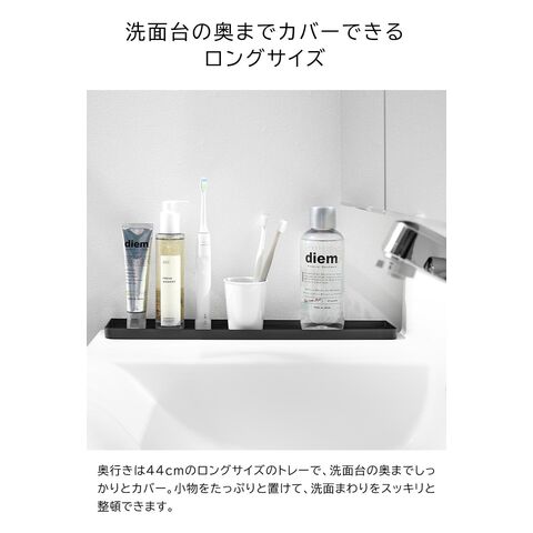 トレーは奥行き44cmのロングサイズで、洗面台の奥までしっかりとカバーします。