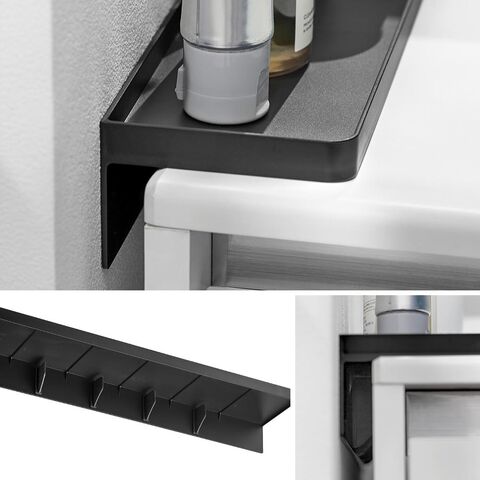 洗面台と壁の間にあいた1~2cmの僅かな隙間に、上から差し込むだけで設置できる隙間収納トレーです。