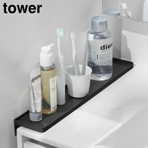 山崎実業 tower タワー 洗面台横隙間トレー ホワイト 10135 / ブラック 10136 | 洗面台 壁 隙間トレー トレイ 隙間収納 落下防止 ちょい置き 差し込み 洗面所 小物置きシンプル おしゃれ 白 黒