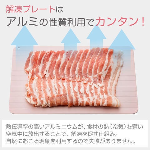 置くだけカンタン 解凍プレート L ピンク | 急速 解凍 プレート 食洗機対応 PFOAフリー 時短 簡単 解凍皿 粗熱取り 自然解凍 肉 魚 冷凍野菜 弁当 お菓子作り