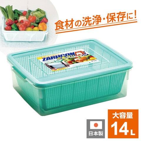 角型 ざる 保存容器 ざるコン 角 14L グリーン | コンテナー ザル カゴ 業務用 大容量 日本製 冷蔵庫 洗い 水切り 食品衛生法適合 積み重ね お米 麺類 野菜 イベント 祭り BBQ