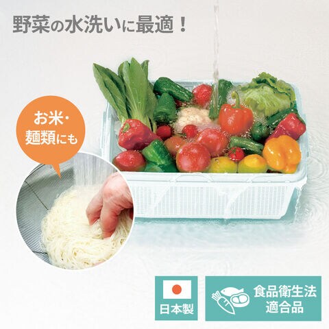お米や麺類、野菜洗いに最適!ざるとコンテナーのセット。