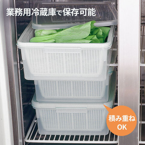 業務用冷蔵庫でフタをしたまま保存が可能です。