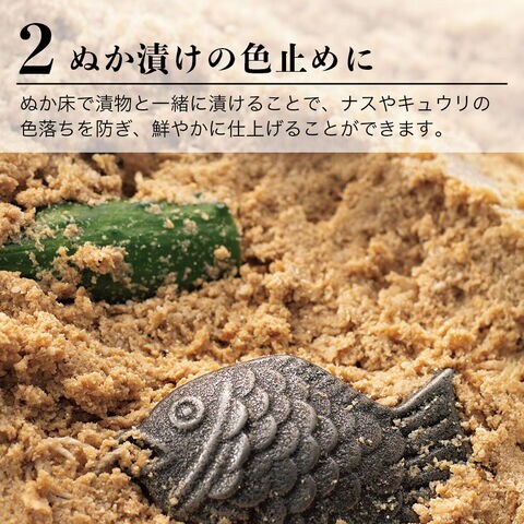 ぬか漬けの色づけにぬか床で漬物と一緒に漬けることで、ナスなどの色を鮮やかに保ちます。
