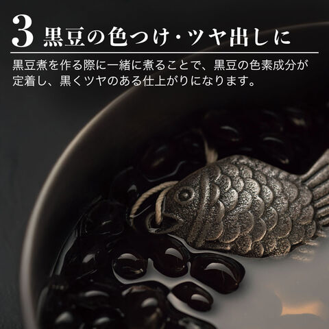 鉄分の補給や、黒豆・漬物の色付けに。鯛のカタチの鉄玉。