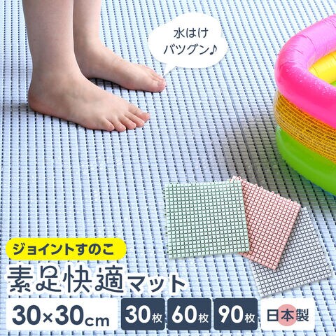 連結すのこ 素足快適マット 30枚セット 30cm×30cm ライトグリーン | ジョイントマット 日本製 プール ロッカー 脱衣所 屋内 屋外 ベランダ 水はけ プラスチック バルコニー ケース販売 まとめ買い コンドル