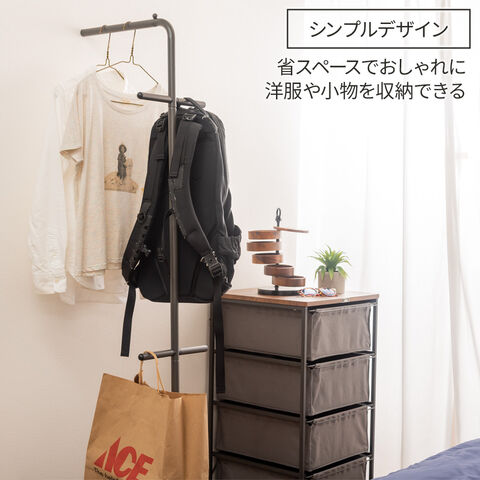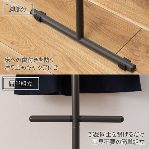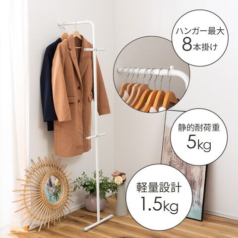 省スペースで置ける立て掛け型お部屋や玄関などの好きな所に立て掛けるだけなので、場所を取らずに洋服やコート、バッグなどを簡単に収納できます。