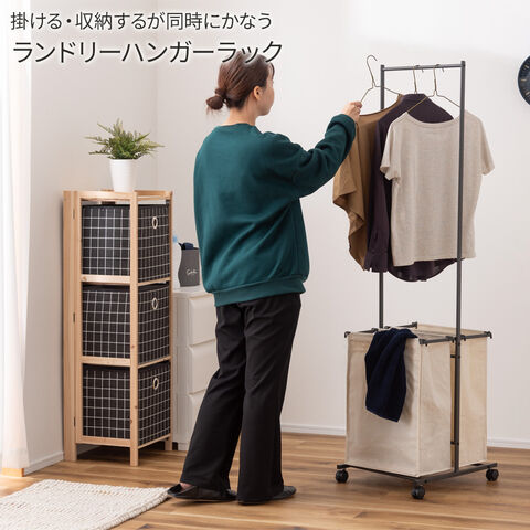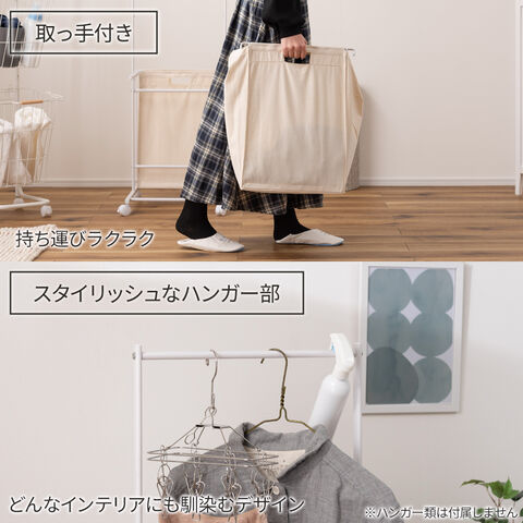 掛ける・収納するが同時にかなう、シンプルなスチール製のランドリーハンガーラック。