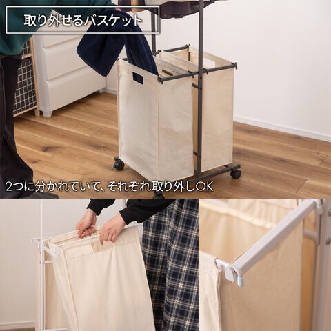 ランドリーバスケット付き ハンガーラック ダークグレー MIP-63 | パイプハンガー キャスター付 バスケット付 物干し 洗濯 ランドリー 洗濯物 収納 賃貸 一人暮らし 寝室 室内 インテリア 見せる収納 シンプル おしゃれ 洋服掛け スチール製