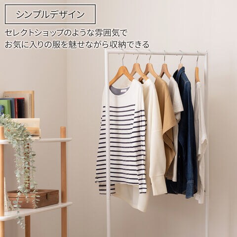 無駄のないデザインお部屋の雰囲気を選ばず、シャープでスッキリとしたデザインは、掛けられた洋服を品よく見せてくれます。