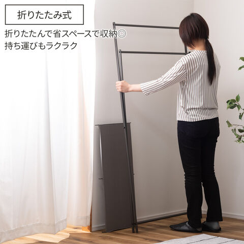 大容量なのに、コンパクトで軽量なスチール製の折り畳み式ハンガーラック。