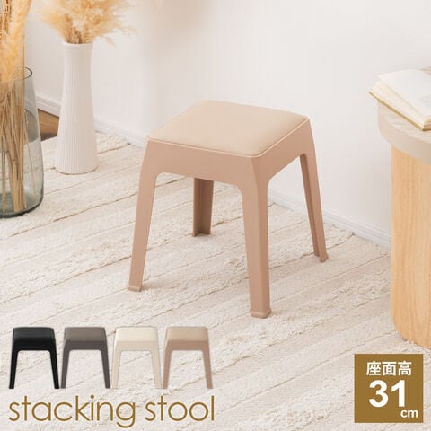 椅子 異素材 スツール ローズベージュ PC-731RBE | スタッキング いす イス おしゃれ 積み重ね モダン 合皮 軽量 チェア 高さ31cm 上品 キッチン リビング ダイニング
