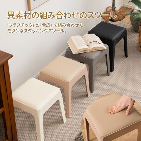 プラスチックと合皮を組み合わせたモダンなスタッキングスツール。