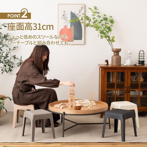 ちょっと低めのスツールなので、ローテーブルと組み合わせても。