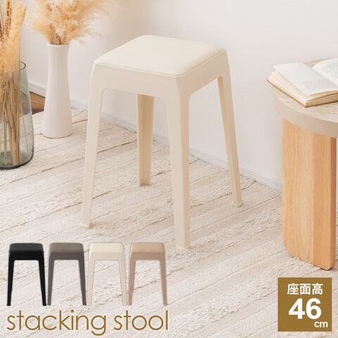 椅子 異素材 ハイスツール アイボリー PC-732IV | スタッキング いす イス おしゃれ 積み重ね モダン 合皮 チェア 高さ46cm 上品 キッチン リビング ダイニング