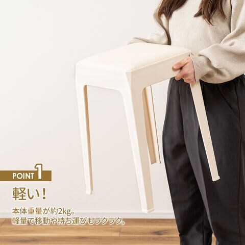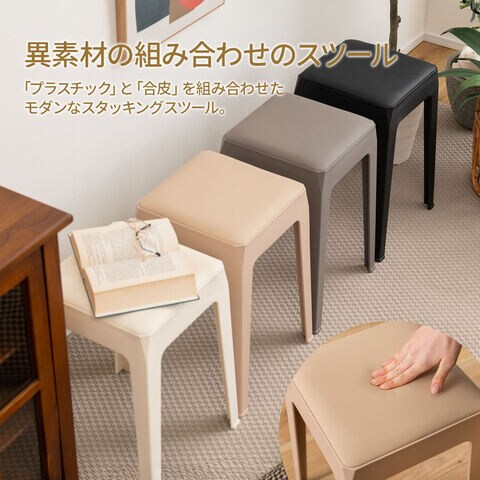 プラスチックと合皮を組み合わせたモダンなスタッキングスツール。