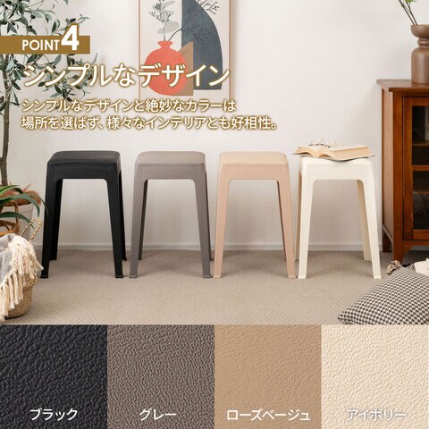 椅子 異素材 ハイスツール ローズベージュ PC-732RBE | スタッキング いす イス おしゃれ 積み重ね モダン 合皮 チェア 高さ46cm 上品 キッチン リビング ダイニング