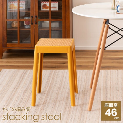 椅子 かごめ編み調 スツール イエロー PC-733YE | スタッキング いす イス おしゃれ 積み重ね モダン 軽量 チェア 高さ46cm キッチン リビング ダイニング