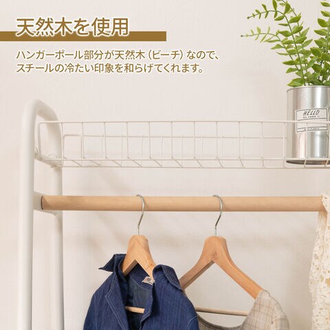ハンガーポール部分が天然木(ビーチ)なので、スチールの冷たい印象を和らげてくれます。
