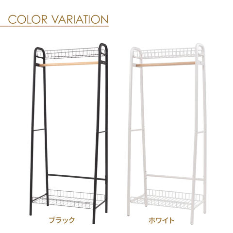 洋服掛け ウッドポール ハンガーラック ホワイト LFS-882WH | コートハンガー 衣類収納 木製ポール 衣類ラック ハンガー掛け スチール シンプル 省スペース 組み立て 組立式 棚付き ストール マフラー コート ショップ 白 黒