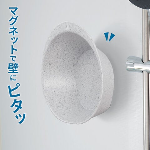 磁石部分のお手入れに配慮湯桶は立てて置くことができます。下面の磁石をお掃除後、乾かす際に便利です。