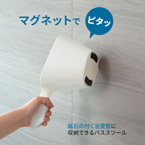 手桶 マグネット収納 1L ホワイト | 手おけ 磁石付き 浴室 浮かせて 壁面収納 壁にくっつく 抗菌 掛湯 風呂桶 掛け湯 バスグッズ 風呂道具 浴用グッズ ユニード UNEED