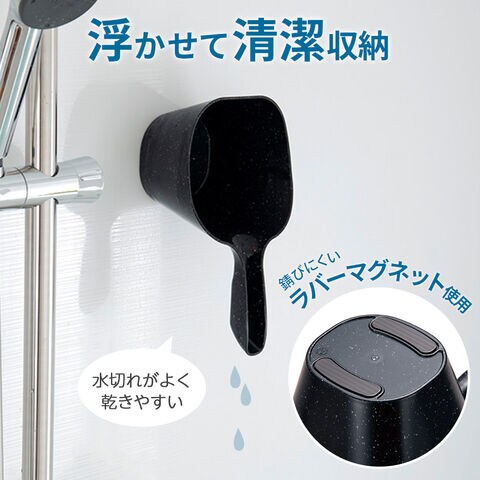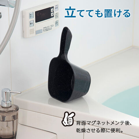 磁石部分のお手入れに配慮手桶は立てて置くことができます。下面の磁石をお掃除後、乾かす際に便利です。