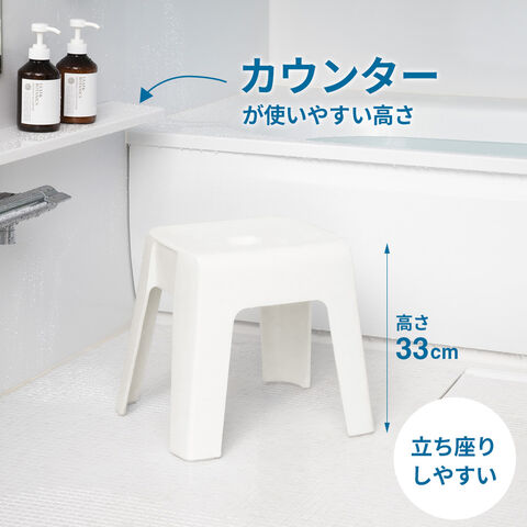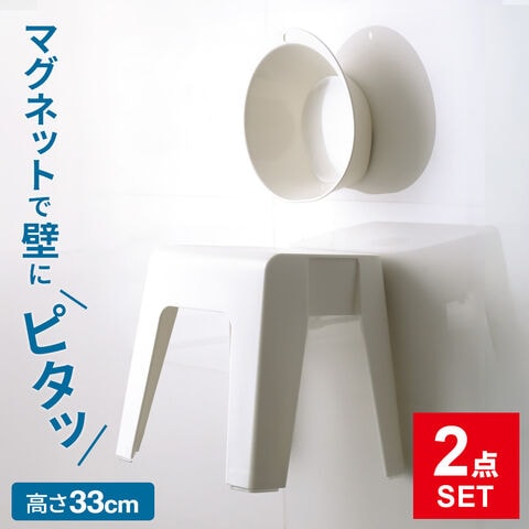 浴室2点セット 湯おけ+風呂椅子33cm ホワイト | バスチェア 日本製 磁石付き お風呂用品 浮かせて 壁面収納 壁にくっつく 抗菌 バススツール 風呂桶 湯桶 洗面器 バスグッズ イス 浴用 ユニード UNEED
