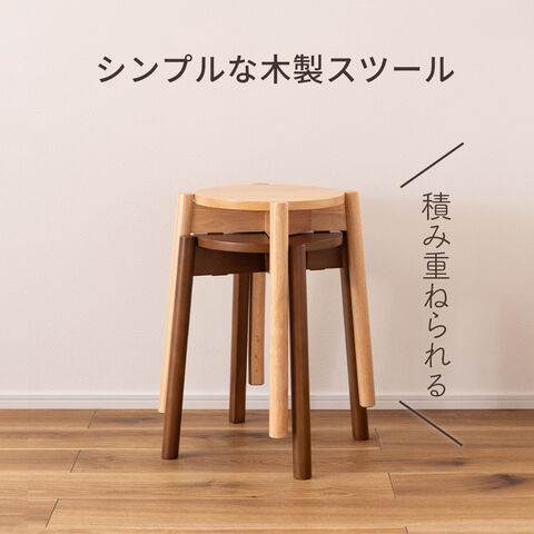 椅子 木製 スツール 44.5cm ナチュラル HOW-008NA | スツール チェア いす イス スタッキング 丸椅子 木製 北欧 シンプル ナチュラル おしゃれ 積み重ね可能 背もたれなし 天然木 軽量 腰掛け 来客用 リビング ダイニング