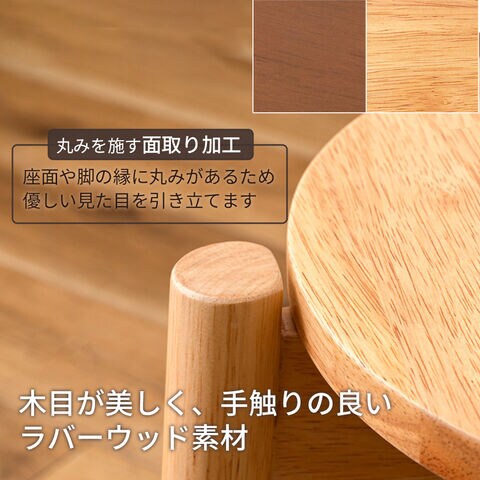 座面や脚には、縁が丸くなるよう面取り加工が施されているので、触り心地が良く優しい見た目を引き立ててくれます。