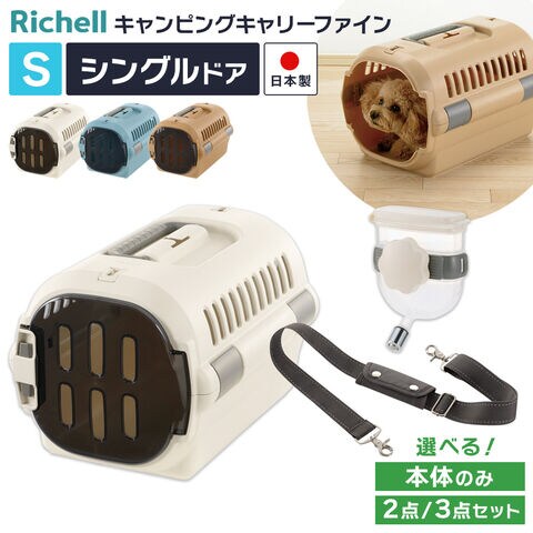 リッチェル ペットキャリー 給水器つき2点セット キャンピングキャリーファイン S ブルー | シングルドア ウォーターノズルつき 超小型犬 ドライブ 外出 移動 小型犬 猫 日本製 プラスチック製 車 シートベルト固定 うさぎ おしゃれ 小動物 ネコ 犬用 猫用 旅行