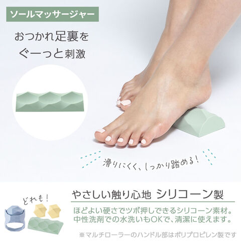 踏むだけで足裏のツボをぐーっと押してくれる、青竹踏みのようなアイテム。優しい触り心地と程よい硬さのシリコーン素材が、足裏全体を程よく刺激します。