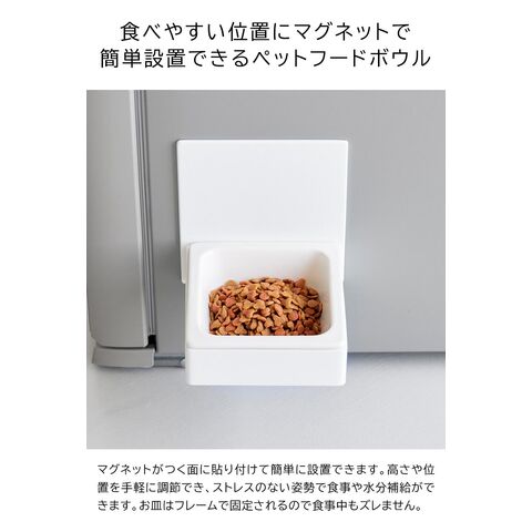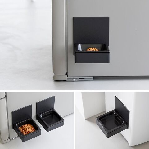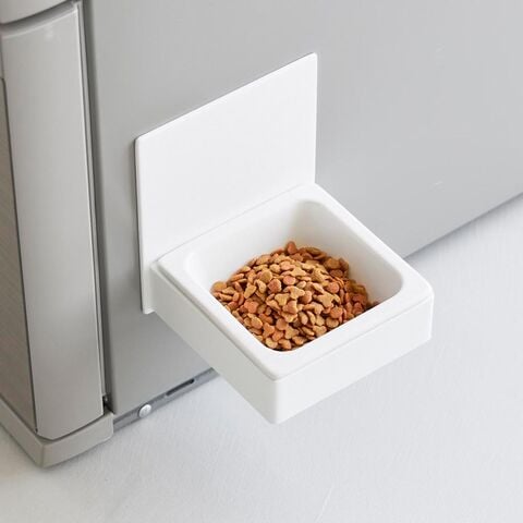 冷蔵庫やウォーターサーバーなどマグネットが付く面に貼り付けて、簡単に設置できるペット用フードボウルです。