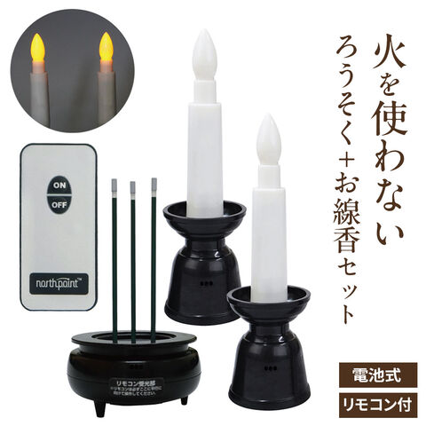 LED ろうそく リモコン式安心LEDローソク+線香セット 黒 FIN-1024BK | 電池式 リモコン 火を使わない 電気 ロウソク 仏具 仏壇 電気ろうそく リモコン付き 自動消灯 電気線香 安心 電球 電子線香 匂い なし 蝋燭