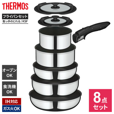 サーモス IH対応 デュラブル 取っ手のとれる フライパンセット 8点セット KSF-8A | THERMOS 鍋 フライパンセット ミラー仕上げ PFOA PFOS フリー 食洗機対応 耐摩耗性 コンパクト オーブンOK アルミ ステンレス おしゃれ 取っ手付き 鍋用フタつき 新生活